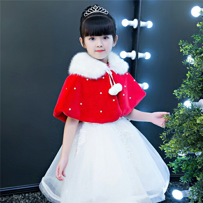 子供 ボレロ フォーマルドレスケープ キッズ ショール 結婚式 肩掛け フェイクファー ワンピース ジュニア お姫様ドレス 発表会 七五三 赤