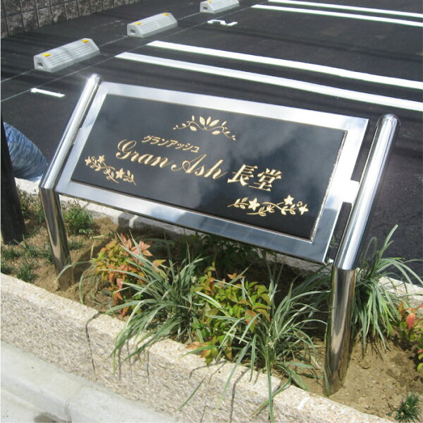 材 質 黒御影石 フレーム:ステンレス鏡面仕上げ サ イ ズ 御影石:H300×W800×D25mm フレーム:H400×W900 加 工 本体表面磨き 文字:サンドブラスト彫りこみ 色入れ塗装(あり・なし選択可) 支 柱 2本足ステンレス丸支柱(鏡面、60Φ) 納 期 デザイン確定後から最短で実働7〜10日間(土日・祝日を除いた約7〜10営業日後の納品です) 同 梱 内 容 施工方法・お手入れ方法説明書・取り付け用ボルト / 2本足支柱・ビス デ ー タ 入 稿 入稿データーをお持ちの場合は下記まで送信をお願い致します。